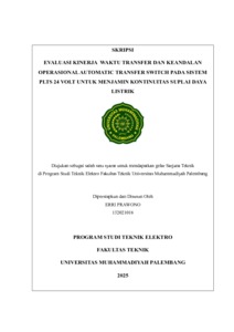 Erri Prawono, NIM. 132021018 (2025) EVALUASI KINERJA WAKTU TRANSFER DAN KEANDALAN OPERASIONAL AUTOMATIC TRANSFER SWITCH PADA SISTEM PLTS 24 VOLT UNTUK MENJAMIN KONTINUITAS SUPLAI DAYA LISTRIK. Skripsi thesis, Universitas Muhammadiyah Palembang.