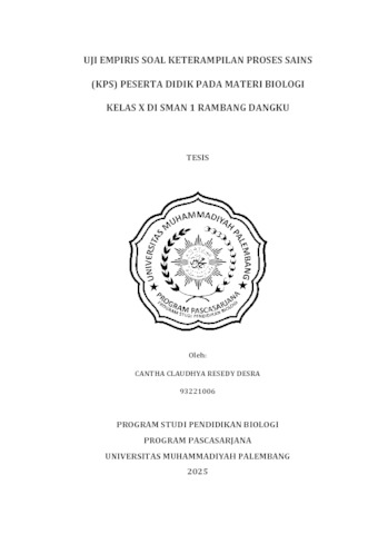CANTHA CLAUDHYA RESEDY DESRA, NIM. 93221006 (2025) UJI EMPIRIS SOAL KETERAMPILAN PROSES SAINS (KPS) PESERTA DIDIK PADA MATERI BIOLOGI KELAS X DI SMAN 1 RAMBANG DANGKU. Skripsi thesis, Universitas Muhammadiyah Palembang.