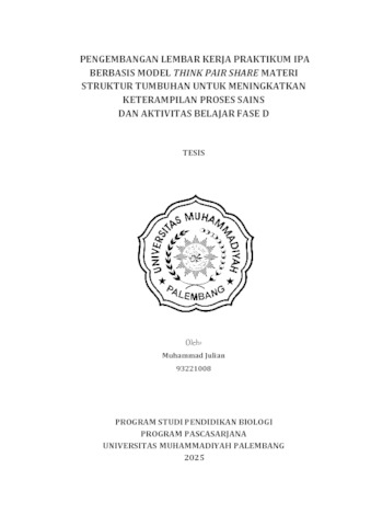 Muhammad Julian, NIM. 93221008 (2025) PENGEMBANGAN LEMBAR KERJA PRAKTIKUM IPA BERBASIS MODEL THINK PAIR SHARE MATERI STRUKTUR TUMBUHAN UNTUK MENINGKATKAN KETERAMPILAN PROSES SAINS DAN AKTIVITAS BELAJAR FASE D. Masters thesis, Universitas Muhammadiyah Palembang.