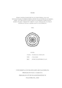 MAHALIA SURYANI, NIM. 91223062 (2025) PERAN MEDIATOR HUBUNGAN INDUSTRIAL DALAM MENYELESAIKAN PERSELISIHAN PEMUTUSAN HUBUNGAN KERJA (PHK) ANTARA PENGUSAHA DENGAN PEKERJA PERJANJIAN KERJA WAKTU TERTENTU (PKWT) YANG TIDAK DICATATKAN DI DINAS TENAGA KERJA KOTA PALEMBANG. Masters thesis, Universitas Muhammadiyah Palembang.