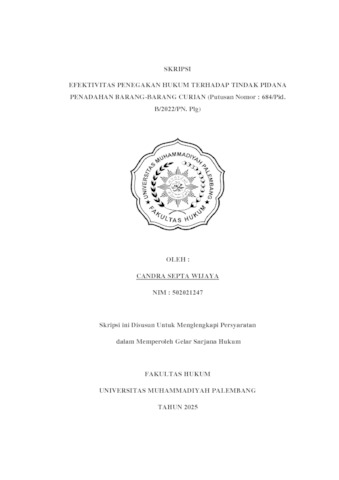 CANDRA SEPTA WIJAYA, NIM : 502021247 (2025) EFEKTIVITAS PENEGAKAN HUKUM TERHADAP TINDAK PIDANA PENADAHAN BARANG-BARANG CURIAN (Putusan Nomor : 684/Pid. B/2022/PN. Plg). Skripsi thesis, Universitas muhammadiyah palembang.