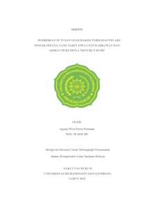 Agung Wira Putra Pratama, NIM : 502020287 (2025) PEMBERIAN PUTUSAN OLEH HAKIM TERHADAP PELAKU TINDAK PIDANA YANG SAKIT JIWA UNTUK DIRAWAT DAN AKIBAT HUKUMNYA MENURUT KUHP. Skripsi thesis, Fakultas Hukum.