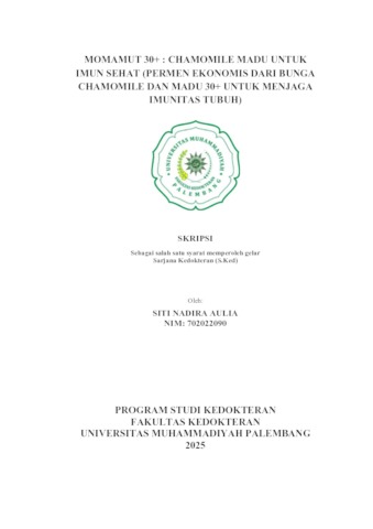 SITI NADIRA AULIA, NIM. 702022090 (2026) MOMAMUT 30+ : CHAMOMILE MADU UNTUK IMUN SEHAT (PERMEN EKONOMIS DARI BUNGA CHAMOMILE DAN MADU 30+ UNTUK MENJAGA IMUNITAS TUBUH). Skripsi thesis, Universitas Muhammadiyah Palembang.