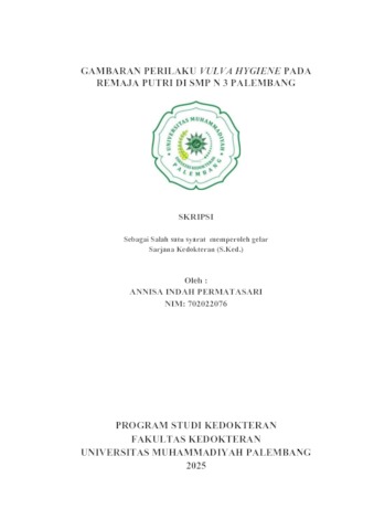 Annisa Indah Permatasari, 702022076 (2025) Gambaran perilaku vulva hygiene pada remaja putri di SMP N 03 Palembang. Skripsi thesis, Universitas Muhammadiyah Palembang.
