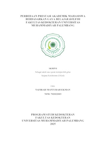 Safirah Masturah Ekman, 702022003 (2025) PERBEDAAN PRESTASI AKADEMIK MAHASISWA BERDASARKAN GAYA BELAJAR KOLB DI FAKULTAS KEDOKTERAN UNIVERSITAS MUHAMMADIYAH PALEMBANG. Skripsi thesis, Universitas Muhammadiyah Palembang.