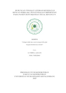 Luthfia Azzani, 702022043 (2025) HUBUNGAN TINGKAT LITERASI KESEHATAN DENGAN PERILAKU PENGENDALIAN HIPERTENSI PADA PASIEN DI PUSKESMAS TEGAL BINANGUN. Skripsi thesis, Universitas Muhammadiyah Palembang.