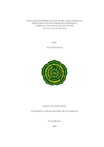 Joy Setiawan, 422021059 (2025) PENGARUH PEMBERIAN PUPUK ORGANIK TERHADAP PERTUMBUHAN DAN PRODUKSI BEBERAPA VARIETAS TANAMAN JAGUNG MANIS (Zea mays Saccharata Sturt). Skripsi thesis, Universitas Muhammadiyyah Palembang.