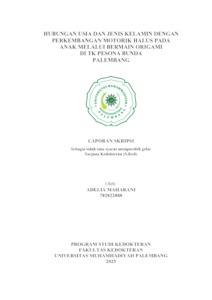 ADELIA MAHARANI, NIM: 702022088 (2025) HUBUNGAN USIA DAN JENIS KELAMIN DENGAN PERKEMBANGAN MOTORIK HALUS PADA ANAK MELALUI BERMAIN ORIGAMI DI TK PESONA BUNDA PALEMBANG. Skripsi thesis, Universitas Muhammadiyah Palembang.
