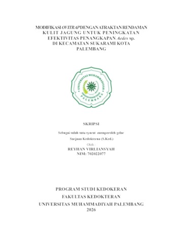 REYHAN VIRLIANSYAH, NIM. 702022077 (2026) MODIFIKASI OVITRAP DENGAN ATRAKTAN RENDAMAN KULIT JAGUNG UNTUK PENINGKATAN EFEKTIVITAS PENANGKAPAN Aedes sp. DI KECAMATAN SUKARAMI KOTA PALEMBANG. Skripsi thesis, Universitas Muhammadiyah Palembang.
