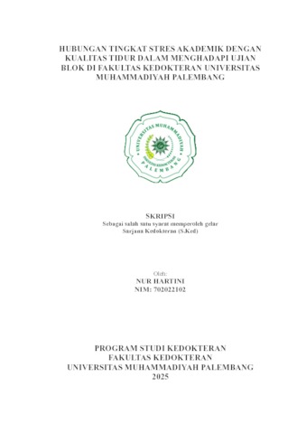 NUR HARTINI, NIM. 702022102 (2025) HUBUNGAN TINGKAT STRES AKADEMIK DENGAN KUALITAS TIDUR DALAM MENGHADAPI UJIAN BLOK DI FAKULTAS KEDOKTERAN UNIVERSITAS MUHAMMADIYAH PALEMBANG. Skripsi thesis, Universitas Muhammadiyah Palembang.