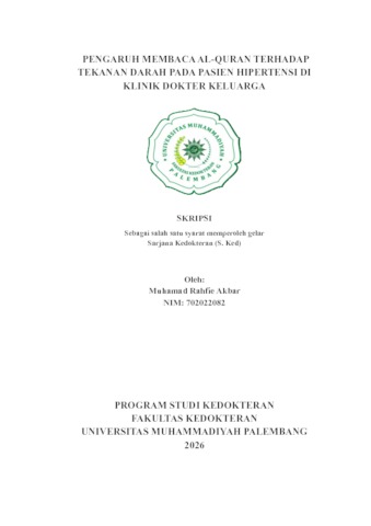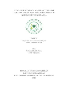 Muhamad Rahfie Akbar, NIM. 702022082 (2026) Pengaruh Membaca Al-Quran terhadap Tekanan Darah pada Pasien Hipertensi di Klinik Dokter Keluarga. Skripsi thesis, Universitas Muhammadiyah Palembang.