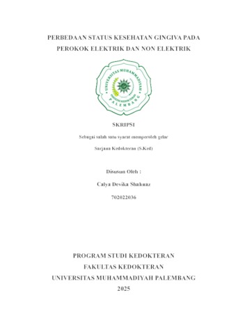 CALYA DEVIKA SHAHNAZ, NIM.702022036 (2025) PERBEDAAN STATUS KESEHATAN GINGIVA PADA PEROKOK ELEKTRIK DAN NON ELEKTRIK. Skripsi thesis, UNIVERSITAS MUHAMMADIYAH PALEMBANG.