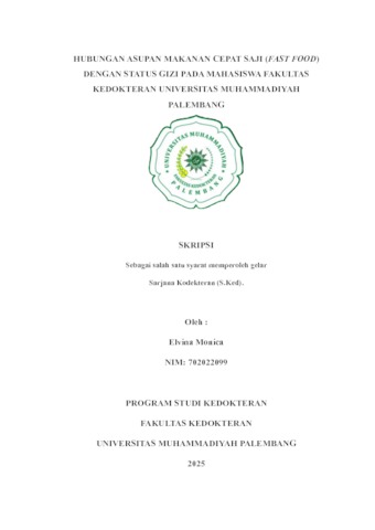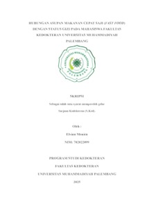 Elvina Monica, NIM. 702022099 (2025) HUBUNGAN ASUPAN MAKANAN CEPAT SAJI (FAST FOOD) dengan STATUS GIZI pada MAHASISWA FAKULTAS KEDOKTERAN UNIVERSITAS MUHAMMADIYAH PALEMBANG. Skripsi thesis, Universitas Muhammadiyah Palembang.