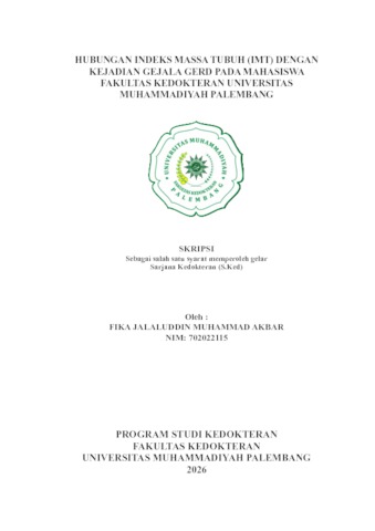 Fika Jalaluddin Muhammad Akbar, NIM: 702022115 (2026) HUBUNGAN INDEKS MASSA TUBUH (IMT) DENGAN KEJADIAN GEJALA GERD PADA MAHASISWA FAKULTAS KEDOKTERAN UNIVERSITAS MUHAMMADIYAH PALEMBANG. Skripsi thesis, Universitas Muhammadiyah Palembang.