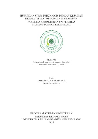 Farras Alya Tsabitah, NIM.702022023 (2025) HUBUNGAN STRES PSIKOLOGIS DENGAN KEJADIAN DERMATITIS ATOPIK PADA MAHASISWA FAKULTASKEDOKTERAN UNIVERSITAS MUHAMMADIYAHPALEMBANG. Skripsi thesis, Universitas Muhammadiyah Palembang.