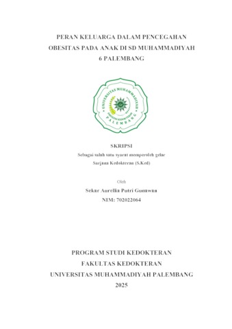 Sekar Aurellia Putri Gunawan, NIM. 702022064 (0025) PERAN KELUARGA DALAM PENCEGAHAN OBESITAS PADA ANAK DI SD MUHAMMADIYAH 6 PALEMBANG. Skripsi thesis, Universitas Muhammadiyah Palembang.