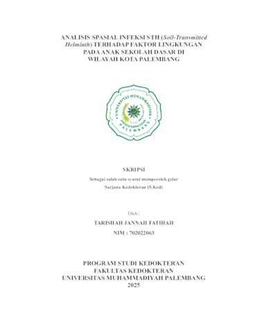 TARISHAH JANNAH FATIHAH, NIM. 702022063 (2025) Analisis Spasial Infeksi STH (Soil-Transmitted Helminths) Terhadap Faktor Lingkungan Pada Anak Sekolah Dasar Di Wilayah Kota Palembang. Skripsi thesis, Universitas Muhammadiyah Palembang.