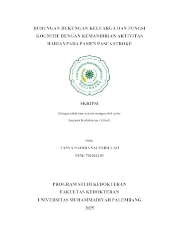 Tasya Nadira Salsabillah, NIM. 702022103 (2025) Hubungan Dukungan Keluarga dan Fungsi Kognitif dengan Kemandirian Aktivitas Harian pada Pasien Pasca Stroke. Skripsi thesis, Universitas Muhammadiyah Palembang.