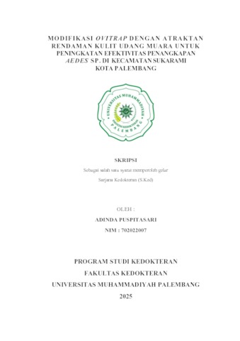 ADINDA PUSPITASARI, . (2025) MODIFIKASI OVITRAP DENGAN ATRAKTAN RENDAMAN KULIT UDANG MUARA UNTUK PENINGKATAN EFEKTIVITAS PENANGKAPAN AEDES SP. DI KECAMATAN SUKARAMI KOTA PALEMBANG. Skripsi thesis, Universitas Muhammadiyah Palemabang.