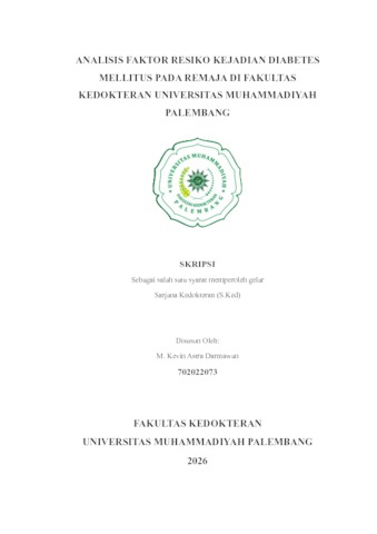 M. KEVIN ASTRA DARMAWAN, NIM. 702022073 (2026) ANALISIS FAKTOR RESIKO KEJADIAN DIABETES MELLITUS PADA REMAJA DI FAKULTAS KEDOKTERAN UNIVERSITAS MUHAMMADIYAH PALEMBANG. Skripsi thesis, Universitas Muhammadiyah Palembang.