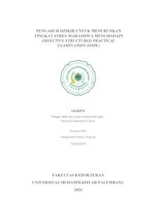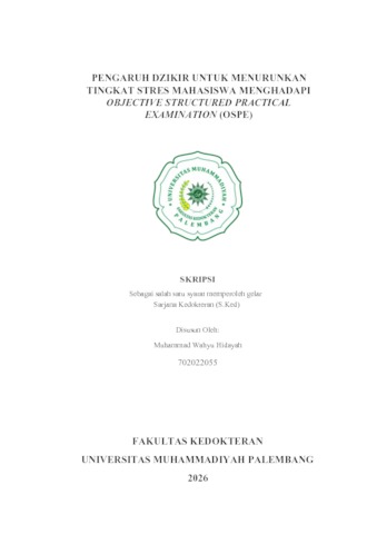 Muhammad Wahyu Hidayah, Wahyu (2026) PENGARUH DZIKIR UNTUK MENURUNKAN TINGKAT STRES MAHASISWA MENGHADAPI OBJECTIVE STRUCTURED PRACTICAL EXAMINATION (OSPE). Skripsi thesis, Universitas Muhammadiyah Palembang.