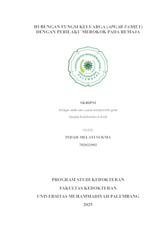INDAH MELATI SUKMA, NIM.702022092 (2025) HUBUNGAN FUNGSI KELUARGA (APGAR FAMILY) DENGAN PERILAKU MEROKOK PADA REMAJA. Skripsi thesis, Universitas Muhammadiyah Palembang.