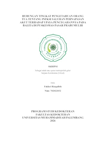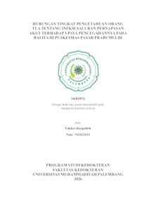 Fakhri Rizqulloh, NIM. 702022032 (2026) HUBUNGAN TINGKAT PENGETAHUAN ORANG TUA TENTANG INFKSI SALURAN PERNAPASAN AKUT TERHADAP UPAYA PENCEGAHANNYA PADA BALITA DI PUSKESMAS PASAR PRABUMULIH. Skripsi thesis, Universitas Muhammadiyah Palembang.