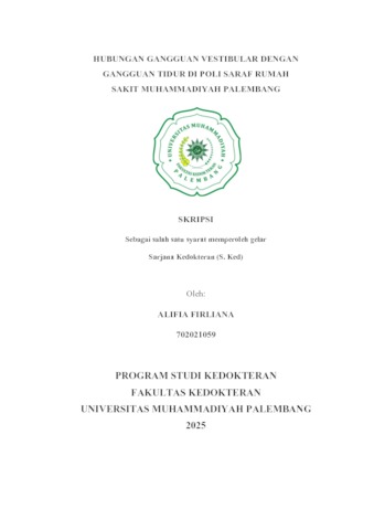 Alifia Firliana, NIM.702021059 (2026) Hubungan Gangguan Vestibular dengan Gangguan Tidur di Poli Saraf Rumah Sakit Muhammadiyah Palembang. Skripsi thesis, Universitas Muhammadiyah Palembang.