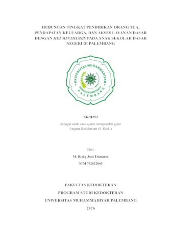 M. RIZKY JODI TRIMARSA, NIM 702022065 (2026) HUBUNGAN TINGKAT PENDIDIKAN ORANG TUA, PENDAPATAN KELUARGA, DAN AKSES LAYANAN DASAR DENGAN HELMINTHIASIS PADA ANAK SEKOLAH DASAR NEGERI DI PALEMBANG. Skripsi thesis, Universitas Muhammadiyah Palembang.