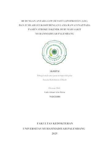 GALU ABIZAR ARIO PUTRA, NIM.702021080 (2026) HUBUNGAN ANTARA LOW DENSITY LIPOPROTEIN (LDL) DAN JUMLAH LEUKOSIT DENGAN LAMA RAWAT INAP PADA PASIEN STROKE ISKEMIK DI RUMAH SAKIT MUHAMMADIYAH PALEMBANG. Skripsi thesis, UNIVERSITAS MUHAMMADIYAH PALEMBANG.