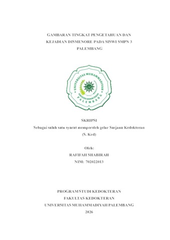 Rafifah Shabirah, NIM.702022013 (2026) GAMBARAN TINGKAT PENGETAHUAN DAN KEJADIAN DISMENORE PADA SISWI SMPN 3 PALEMBANG. Skripsi thesis, Universitas Muhammadiyah Palembang.