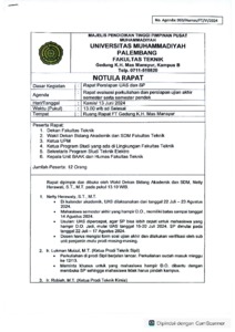 FAKULTAS TEKNIK, FT UMP (2024) RAPAT EVALUASI PERKULIAHAN DAN PERSIAPAN UJIAN AKHIR SEMESTER DAN SEMESTER PENDEK. FAKULTAS TEKNIK UNIVERSITAS MUHAMMADIYAH PALEMBANG.