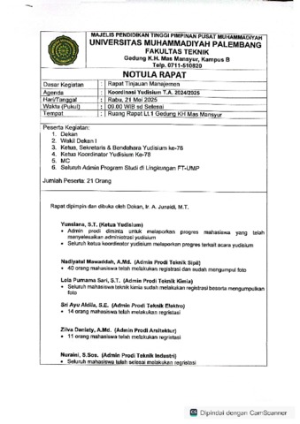 FAKULTAS TEKNIK, FT UMP (2025) KOORDINASI YUDISIUM TAHUN AJARAN 2024/2025. FAKULTAS TEKNIK UNIVERSITAS MUHAMMADIYAH PALEMBANG.