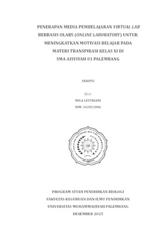 Mila Lestriani, NIM. 342021006 (2025) PENERAPAN MEDIA PEMBELAJARAN VIRTUAL LAB BERBASIS OLABS (ONLINE LABORATORY) UNTUK MENINGKATKAN MOTIVASI BELAJAR PADA MATERI TRANSPIRASI KELAS XI DI SMA AISYIYAH 01 PALEMBANG. Skripsi thesis, Universitas Muhammadiyah Palembang.