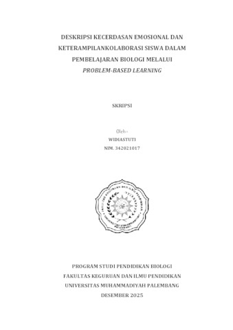 Widiastuti, NIM. 342021017 (2026) DESKRIPSI KECERDASAN EMOSIONAL DAN KETERAMPILANKOLABORASI SISWA DALAM PEMBELAJARAN BIOLOGI MELALUI PROBLEM-BASED LEARNING. Skripsi thesis, Universitas Muhammadiyah Palembang.