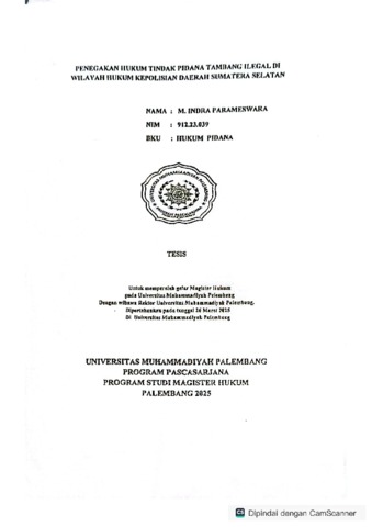 M.INDRA PARAMESWARA, NIM. 91223039 (2025) PENEGAKAN HUKUM TINDAK PIDANA TAMBANG ILEGAL DI WILAYAH HUKUM KEPOLISIAN DAERAH SUMATRA SELATAN. Masters thesis, Universitas muhammadiyah palembang.