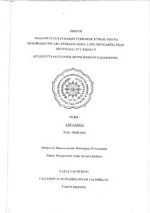 ADE SASKIA, NIM. 502022002 (2026) ANALISIS PUTUSAN HAKIM TERHADAP TINDAK PIDANA KEKERASAN SECARA BERSAMA-SAMA YANG MENGAKIBATKAN MENINGGALNYA KORBAN (STUDI PUTUSAN NOMOR 203/Pid.B/2025/PN PALEMBANG). Skripsi thesis, UNIVERSITAS MUHAMMADIYAH PALEMBANG.