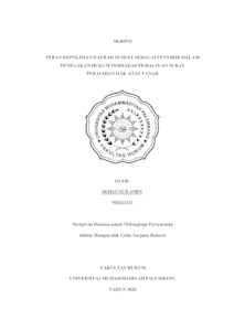 DIMAS NUR AMIN, NIM : 502022121 (2026) PERAN KEPOLISIAN DAERAH SUMSEL SEBAGAI PENYIDIK DALAM PENEGAKAN HUKUM TERHADAP PEMALSUAN SURAT PERALIHAN HAK ATAS TANAH. Skripsi thesis, FAKULTAS HUKUM.